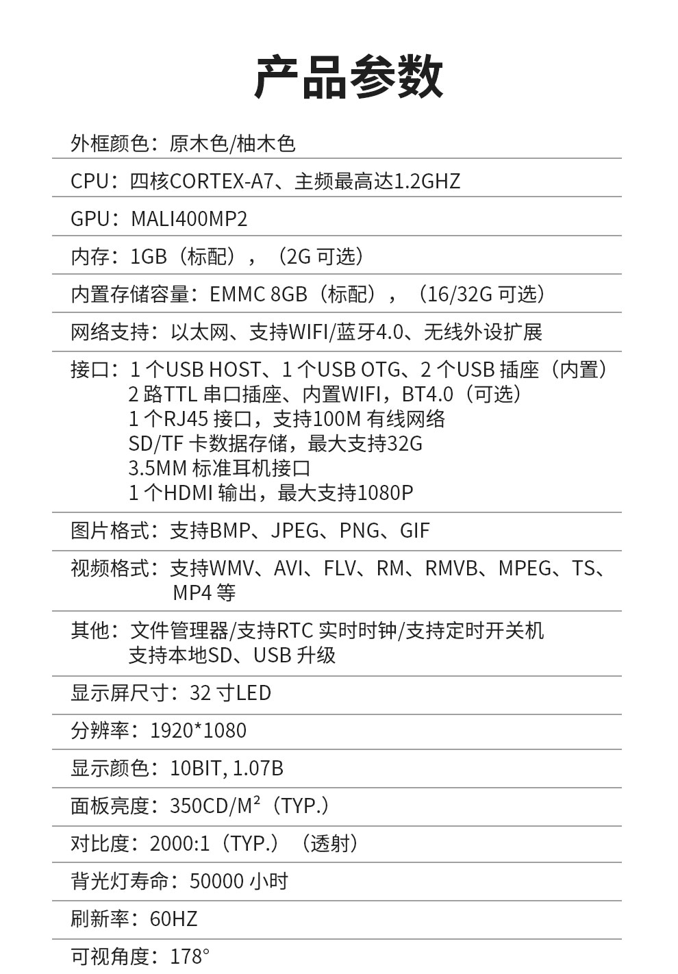 可選尺寸:21.5寸-65寸